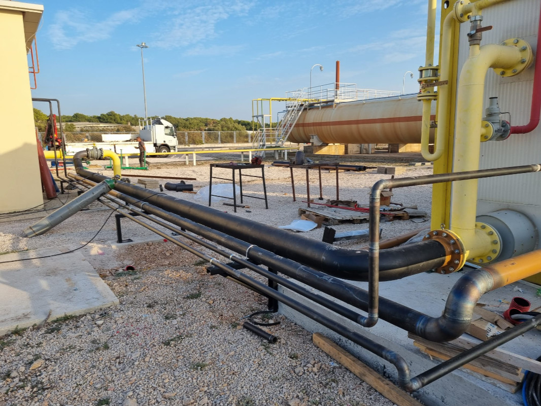 Odrađeni unutarnji pregledi dva spremnika od 150 m3, ispitivanje sigurnosnih ventila i manometara, ispitivanje plinske instalacije, servis kompresora TIGHT A938, servis toplovodnih isparivača Merkantile ( 500 kg/h), izrada novog cjevovoda DN200 za spajanje mješališta plina Ex detaljni pregledi instalacije i uređaja